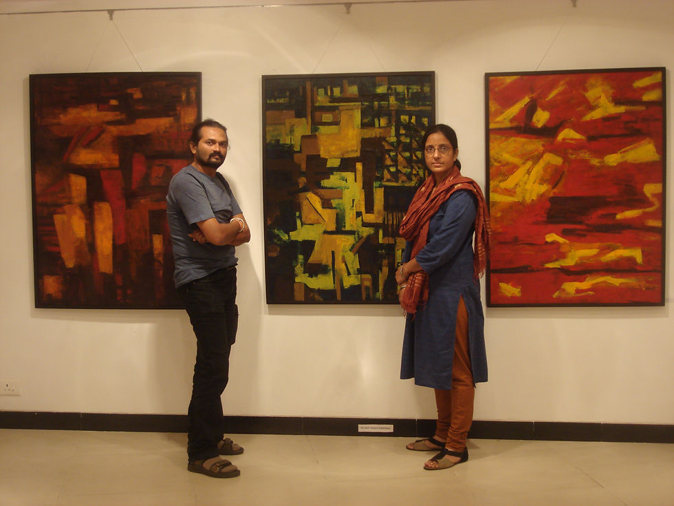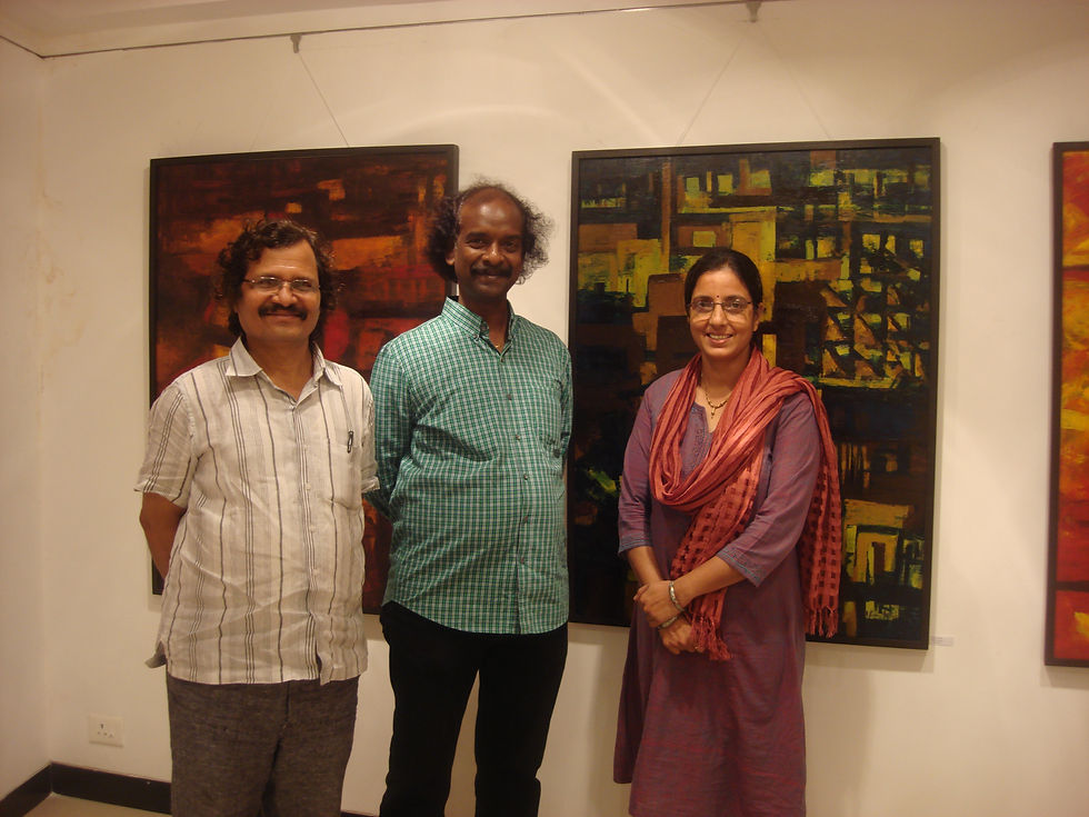 (L to R) Artist Nirmala Singh, Sculptor Himmat Shah and poet and art critic Prayag Shukla